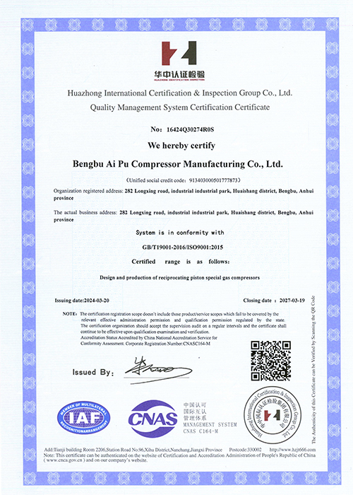 Quality Management System Cerifieation Certifieate